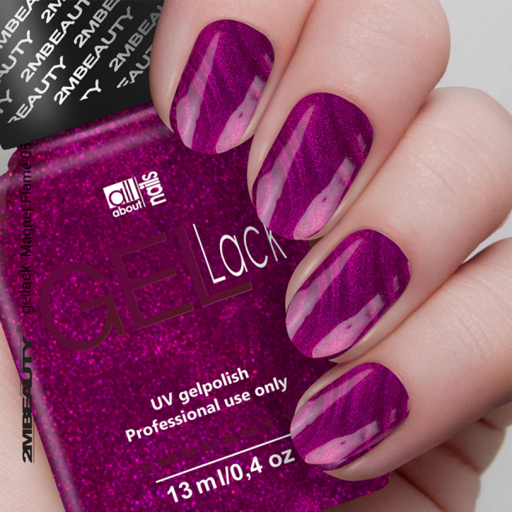 Magnetni gel lak u boji tirolske ljubičice, koji sadrži reflektujuće svetlucajuće čestice u sebi. Ima iskričav efekat.