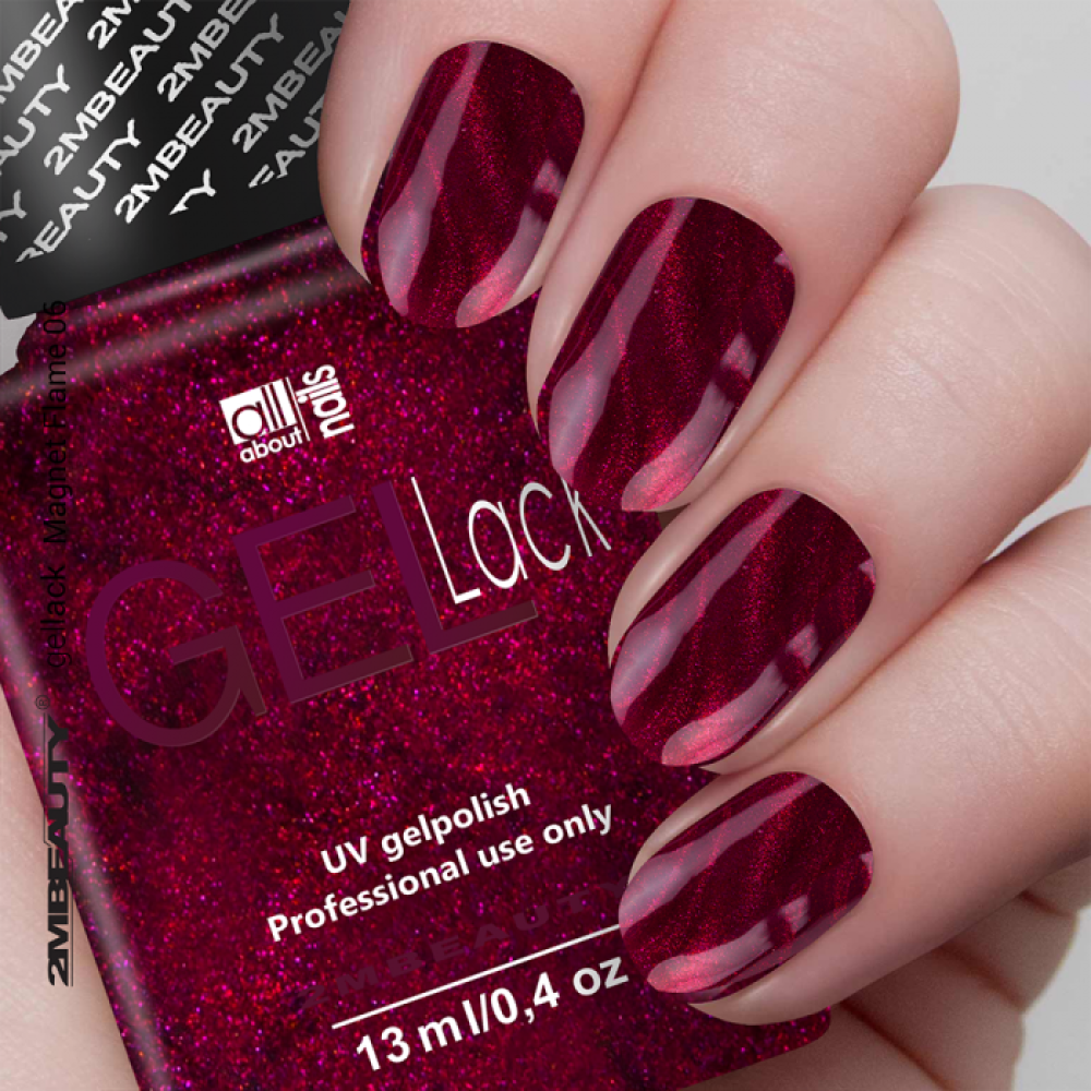 Magnetni gel lak u boji tirolske ljubičice, koji sadrži reflektujuće svetlucajuće čestice u sebi.