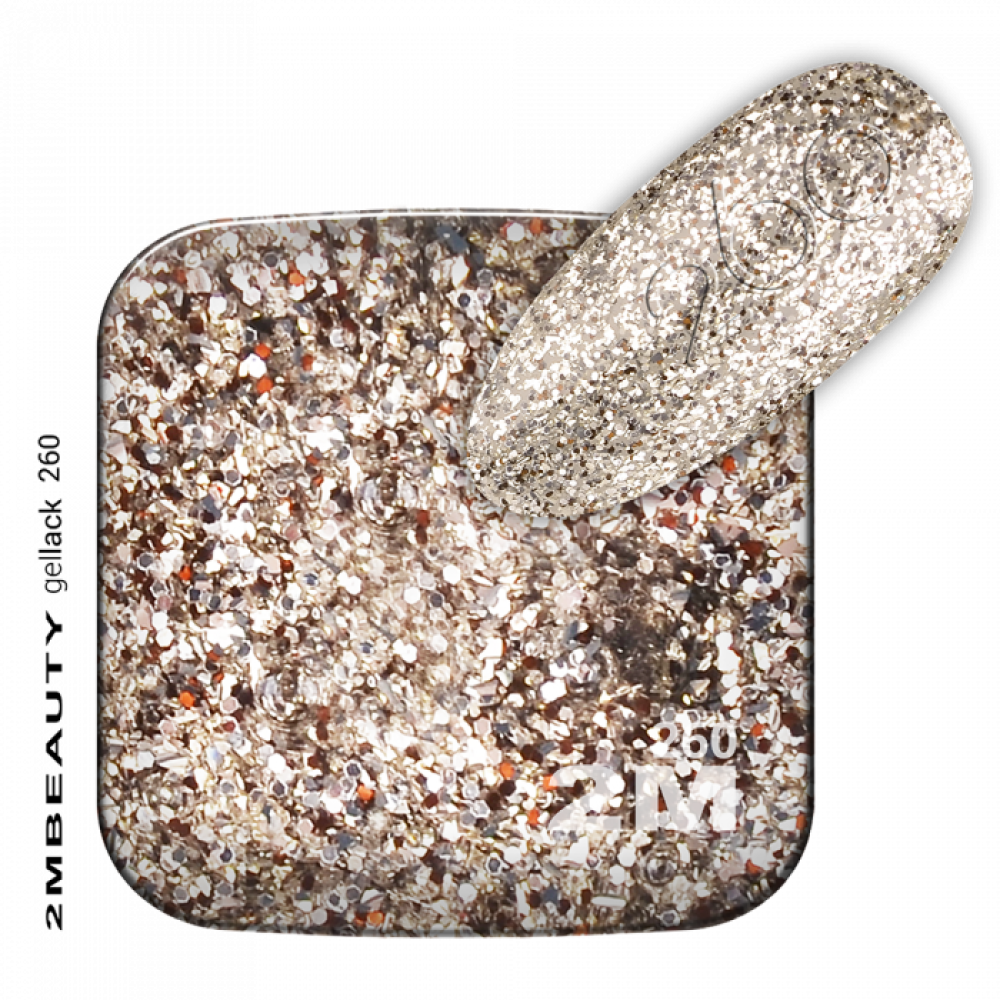Gel lak u zlatnoj boji sa šljokicama.PAŽNJA! Pre upotrebe dobro promućkati!Vreme sušenja u lampi: 0,5-1 minut.Pakovanje: 5 i 13ml