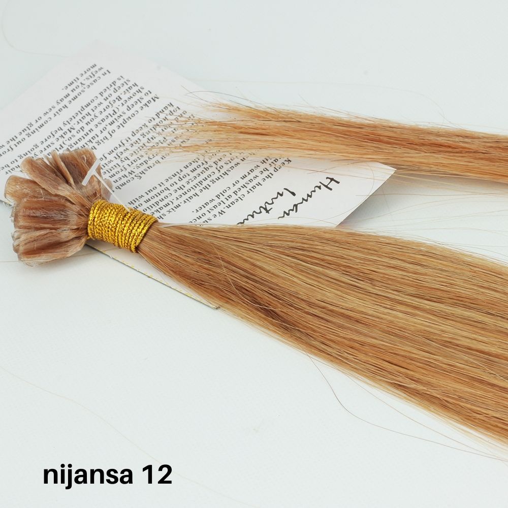 Pramenovi od 100 % prirodne kose, dužine 60 cm, sa keratinom u obliku nokta na vrhu, predviđeni za nadogradnju keratinom.