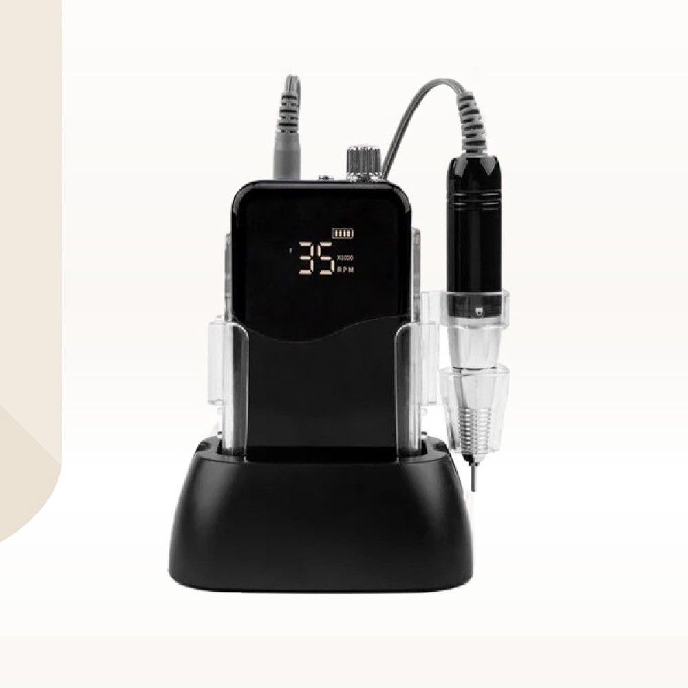 Ova crna bežična električna turpija sa 35000 obrtaja u minuti idealna je za uklanjanje gela, gellaka i akrila ili druge nail art tehnike kao i za obradu i pripremu prirodnog nokta za tehnike nadogradnje.