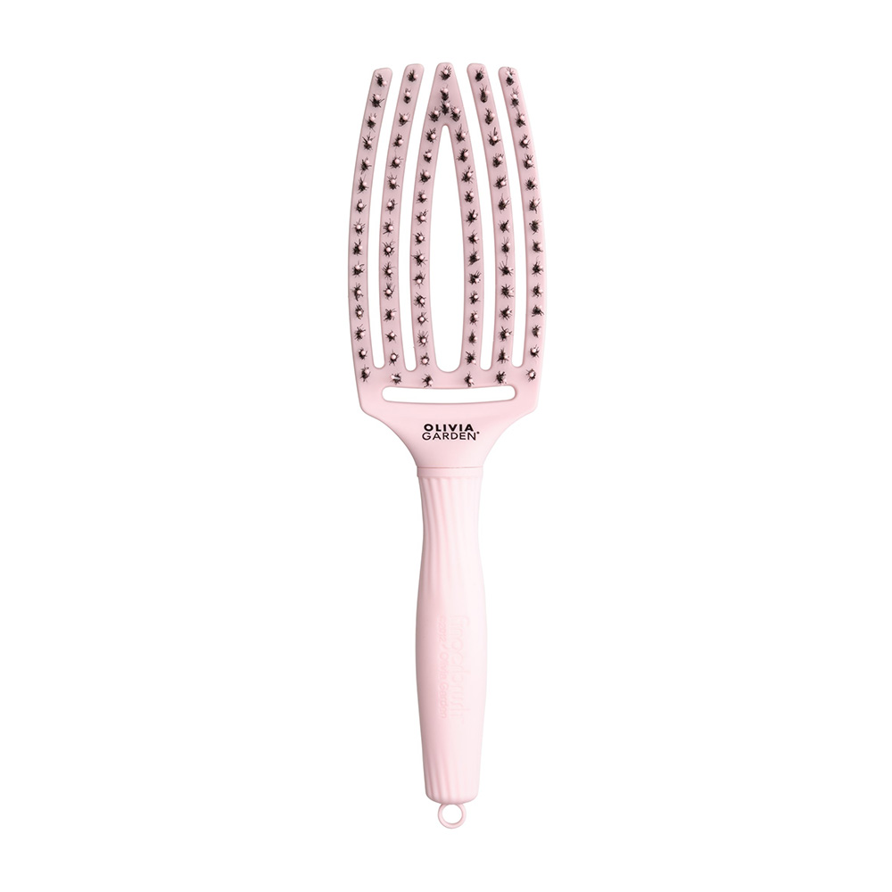 Najprodavaniji model Olivia Garden četki, namenjen za raščešljavanje i stilizovanje. Idealna četka za raščešljavanje i svakodnevnu upotrebu, pogodna za mokru i suvu kosu. Konkavan oblik četke omogućava bolje prianjanje uz glavu i teme, što pruža bolju kontrolu i prijatnu masažu. Poseban dizajn otvora na četki omogućava brže sušenje, čime se smanjuje isušivanje kose i vlasišta. Savršena je za očuvanje zdravlja kose zahvaljujući kombinaciji prirodnih i veštačkih iglica koje ravnomerno raspoređuju prirodna ulja duž dlake, naglašavajući prirodan sjaj, dok istovremeno masiraju teme glave. Fingerbrush četka pravi razliku – bez čupanja i lomljenja potpuno raščešljava sve tipove kose, lagana je i sadrži iglu za raspoređivanje kose.