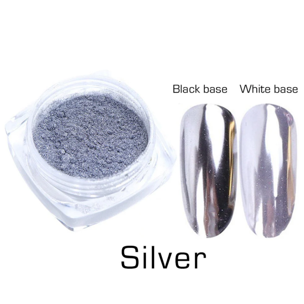 Fino raspršeni hrom prah sa reflektujućim česticama nanosi se na podlogu gela ili gel laka, stvarajući na noktu površinu ogledala koja odlično izgleda na noktima bilo koje dužine.