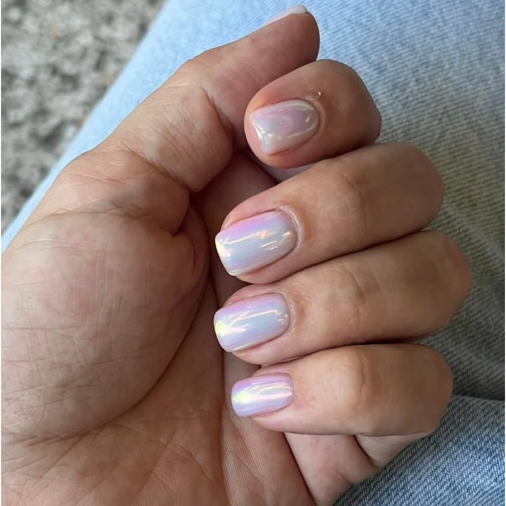 Fino raspršeni hrom prah sa reflektujućim česticama nanosi se na podlogu gela ili gel laka, stvarajući na noktu površinu ogledala koja odlično izgleda na noktima bilo koje dužine.