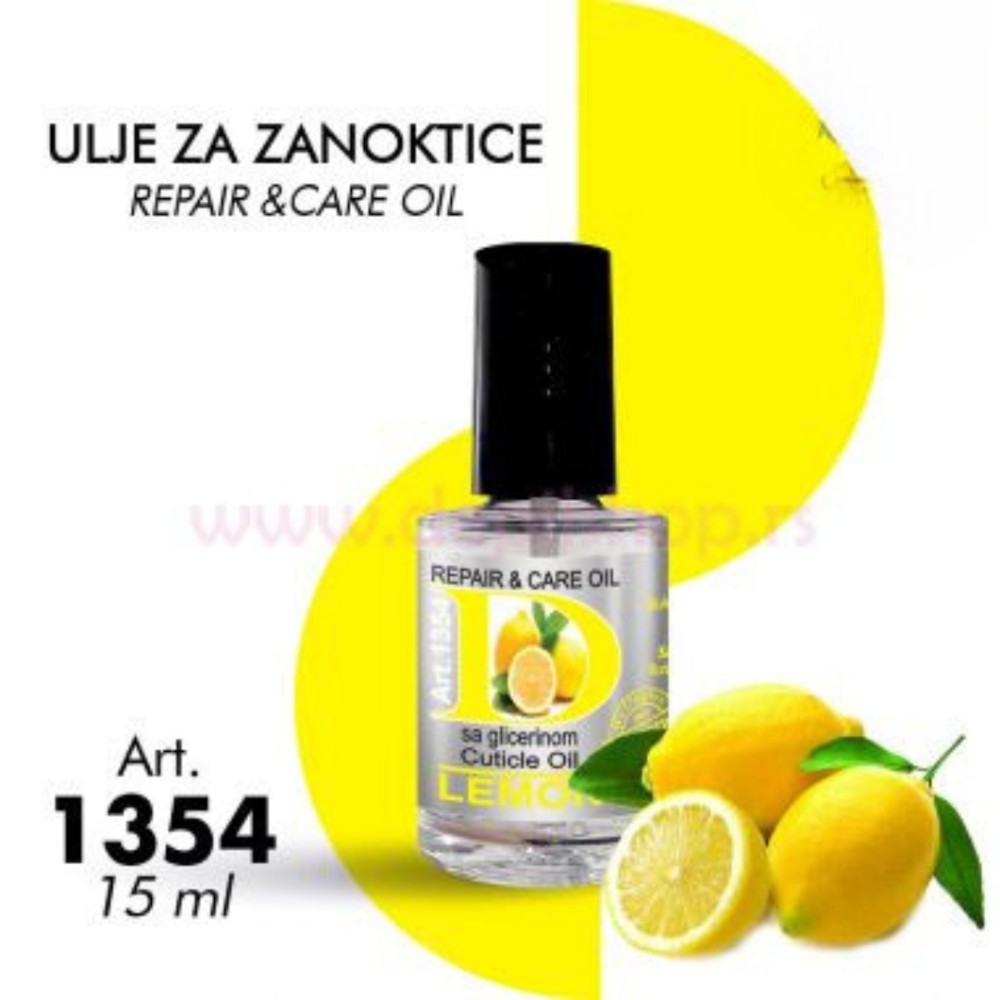 Ulje za zanoktice sa glicerinom i ekstraktom limuna. Regeneriše, omekšava i vlaži zanoktice tako da ih možete oblikovati ili ukloniti a ujedno jača nokte i daje im elastičnost. Način upotrebe: ulje nanosite svakodnevno, naročito na dno nokta. Kada se preparat upije pogurajte zanoktice nežno unazad.  Ulje možete koristiti i preko lakiranih noktiju jer ne oštećuje lak. Promućkati pre upotrebe.