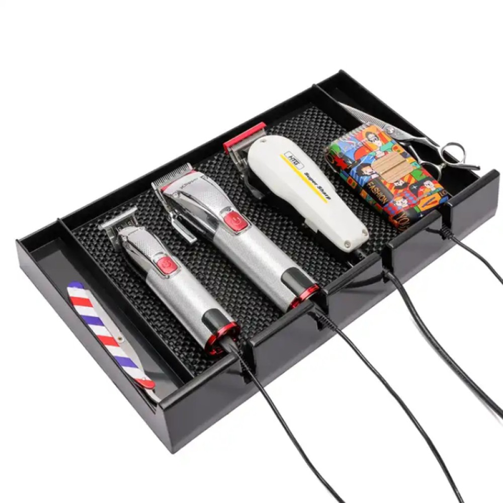 Praktičan stalak za aparate i trimere za šišanje, sa prostorom za odlaganje 4 aparata.
