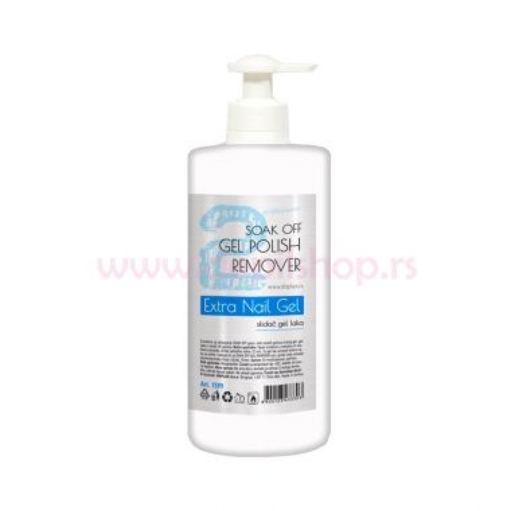 Sredstvo za uklanjanje gela i svih ostalih gelova (color gelova, gel laka i ostalih UV gelova). Način upotrebe: Sipati sredstvo u metalnu ili staklenu posudu , džati vešačke nokte 15min. Za gel lak umotati tufere vate na nokte i natopiti ih sa SOAK OFF GEL REMOVER-om i preko vate umotati aluminijumsku foliju i držati 15min.
