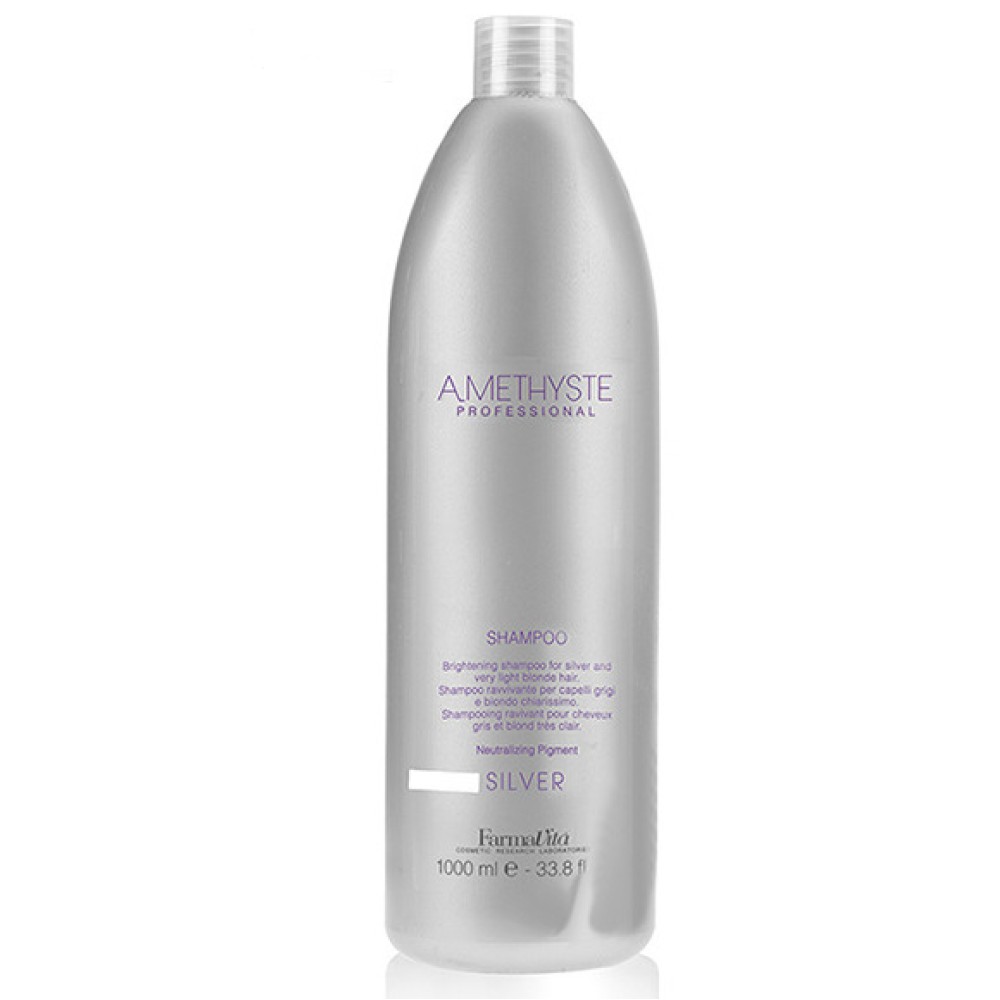 FarmaVita Amethyste "Silver" šampon (1000 ml) služi za održavanje srebrnih tonova, sede i veoma svetle plave kose. Lagano čisti kosu i neutrališe žute tonove bez dodatnog isušivanja. Dostupan je i u pakovanju od 250 ml.