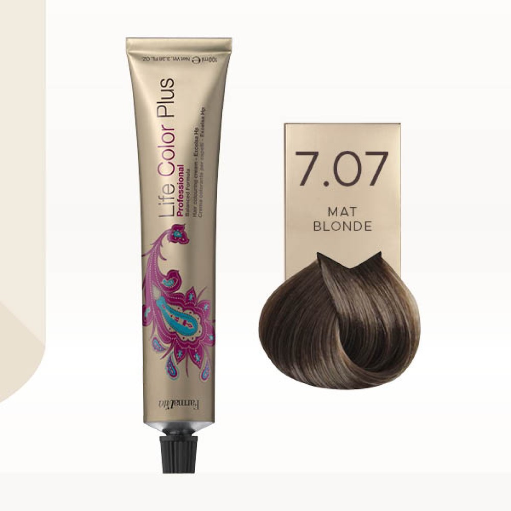 U zavisnosti od potrebe, FarmaVita Life Color Plus trajnu mat plavu farbu za kosu (7.07), mešati sa Life Cream hidrogenom od: