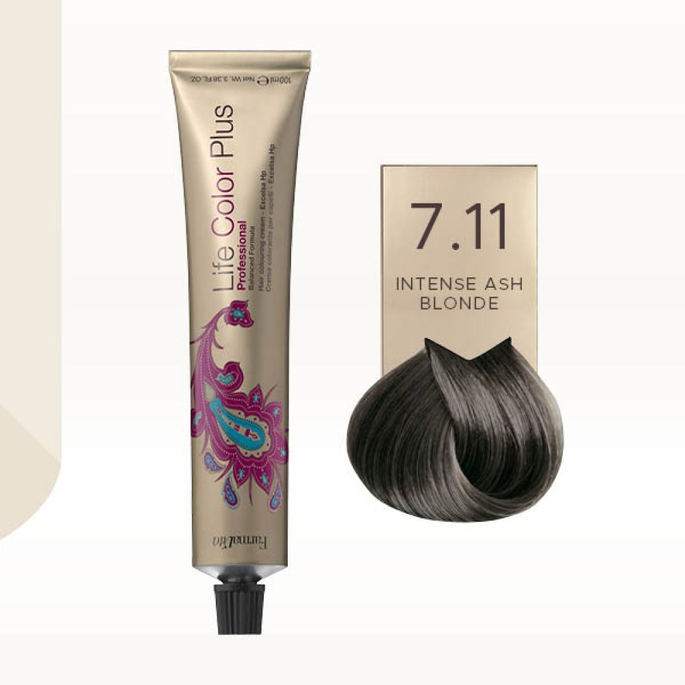 U zavisnosti od potrebe, FarmaVita Life Color Plus trajnu intenzivnu pepeljasto plavu farbu za kosu (7.11), mešati sa Life Cream hidrogenom od: