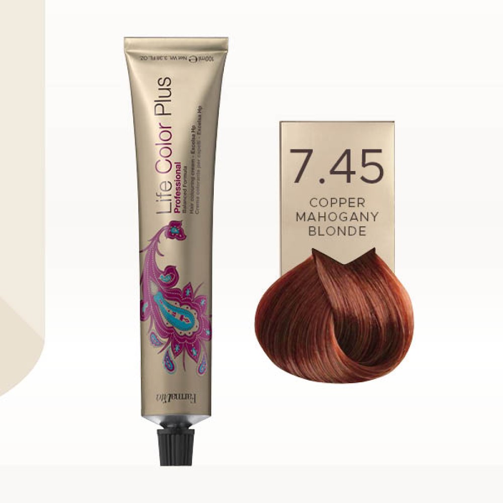 Bakarna mahagoni plava (7.45) boja za kosu spada u porodicu bakarnih nijansi i ima uravnoteženu formulu koja omogućava interakciju između hidrirajućih oligopeptida i visokokvalitetnih pigmenata. Njihovo uzajamno dejstvo omogućava dubinsko prodiranje specijalnih molekula u korteks dlake, pružajući kosi dugotrajnu hidriranost i lakše stilizovanje.