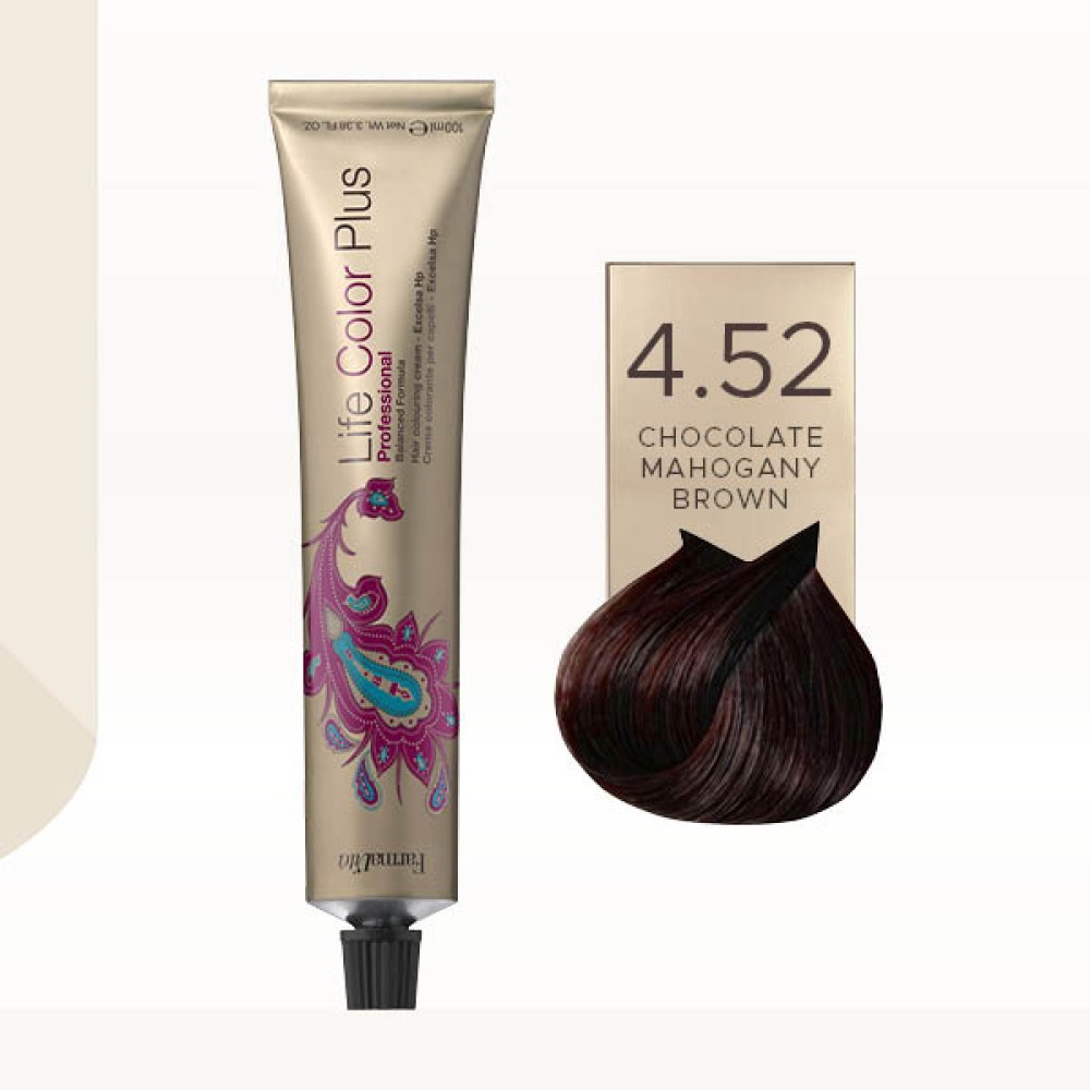 FarmaVita Life Color Plus čokoladna mahagoni braon farba za kosu sadrži izuzetno nizak procenat amonijaka. Obogaćena uljem brazilskog oraha, ova farba čini kosu jakom, sjajnom i lakom za češljanje i feniranje. Njena specijalna formulacija protiv iritacije stvara zaštitni film oko dlake i kože glave tokom nanošenja boje.