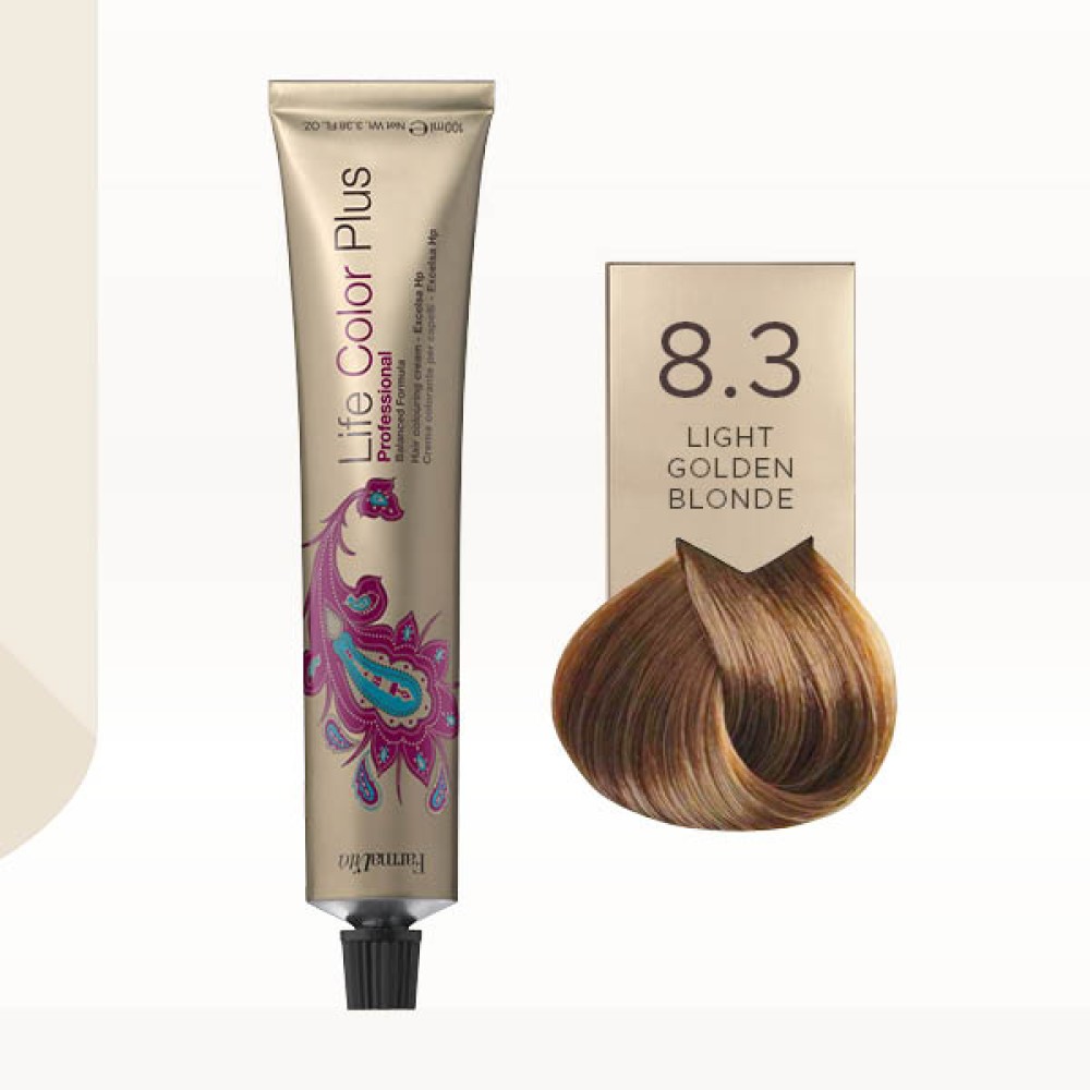 Svetla zlatno plava (8.3) boja za kosu spada u porodicu zlatnih nijansi i ima uravnoteženu formulu koja omogućava interakciju između hidrirajućih oligopeptida i visokokvalitetnih pigmenata. Njihovo uzajamno dejstvo omogućava dubinsko prodiranje specijalnih molekula u korteks dlake, pružajući kosi dugotrajnu hidriranost i lakše stilizovanje.