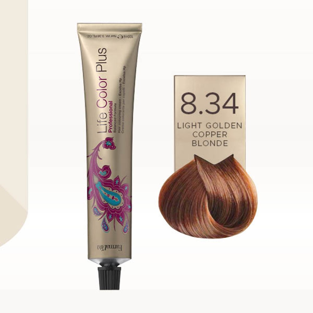 U zavisnosti od potrebe, FarmaVita Life Color Plus trajnu svetlu zlatno bakarno plavu farbu za kosu (8.34), mešati sa Life Cream hidrogenom od: