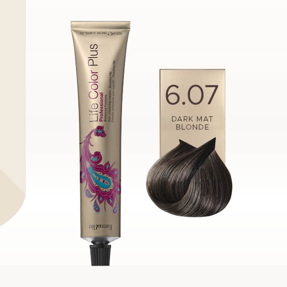 U zavisnosti od potrebe, FarmaVita Life Color Plus trajnu tamnu mat plavu farbu za kosu (6.07), mešati sa Life Cream hidrogenom od: