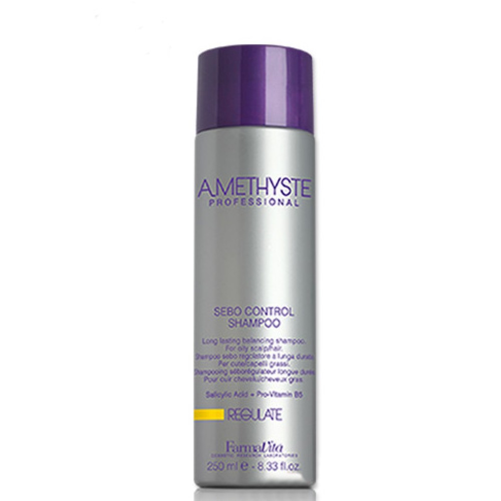 FarmaVita Amethyste "Regulate" predstavlja liniju šampona za masnu kosu. U aktivne sastojke ovog šampona spadaju provitamin B5 koji obezbeđuje dodatnu hidrataciju i salicilna kiselina koja dubinski čisti skalp reguliše lučenje sebuma i dodatno hidrira kosu.