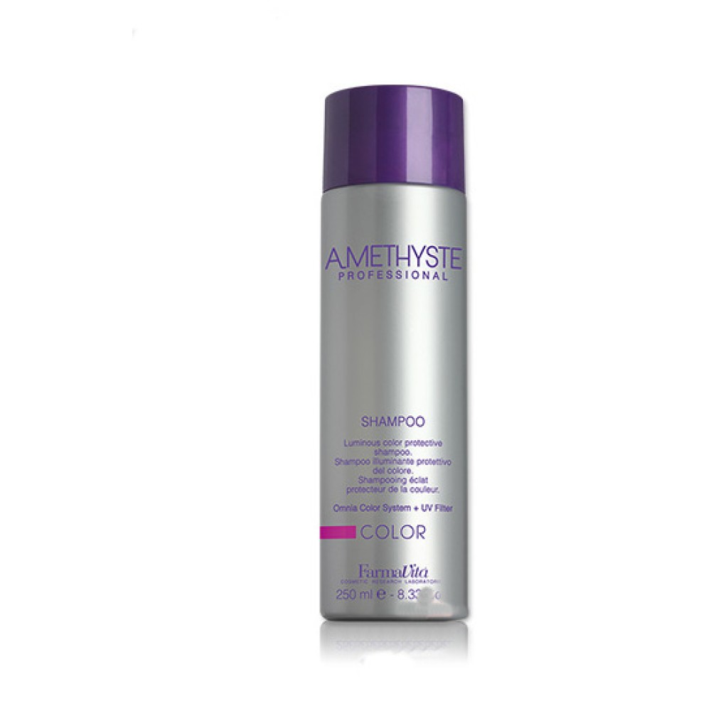 FarmaVita Amethyste "Color" šampon (250 ml) je namenjen za zaštitu farbane kose, jer sprečava ispiranje boje i utiče na jačanje i njenu hidrataciju. Bogat je prirodnim antioksidantima i masnim kiselinama. Dostupan je i u pakovanju od jednog litra.