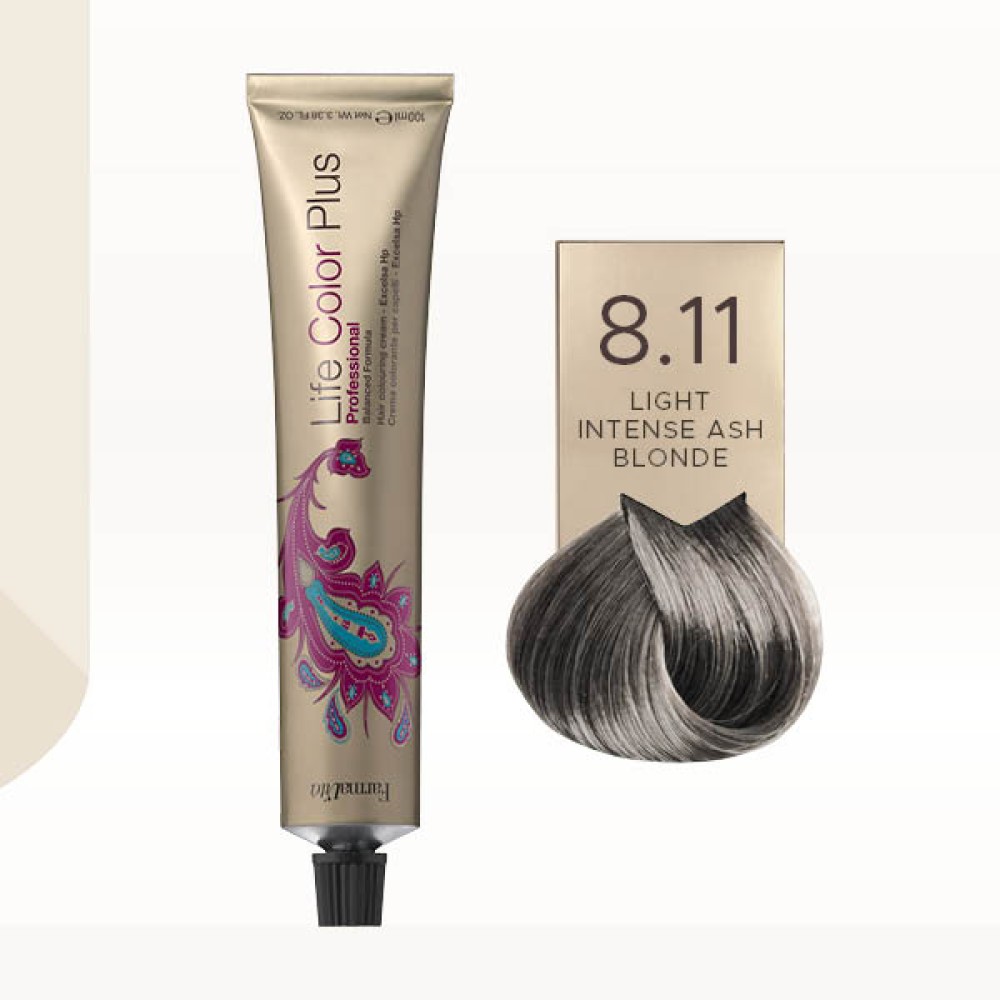 Svetla intenzivna pepeljasto plava (8.11) boja za kosu spada u porodicu pepeljastih nijansi i ima uravnoteženu formulu koja omogućava interakciju između hidrirajućih oligopeptida i visokokvalitetnih pigmenata. Njihovo uzajamno dejstvo omogućava dubinsko prodiranje specijalnih molekula u korteks dlake, pružajući kosi dugotrajnu hidriranost i lakše stilizovanje.