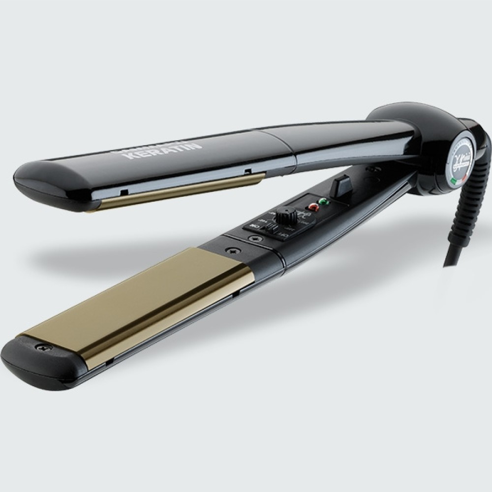 GammaPiu "Keratin" crna presa za kosu sa svojim plutajućim turmalinskim pločama, idealna je za korišćenje prilikom tretmana brazilskim keratinnom. Ova presa omogućava brzo i jednostavno ispravljanje ili kovrdžanje kose. Uz to, veoma brzo se zagreva i spremna je za upotrebu nakon svega 30 sekundi. Ima elektronsku regulaciju temperature. Dostupna je i u crvenoj boji.