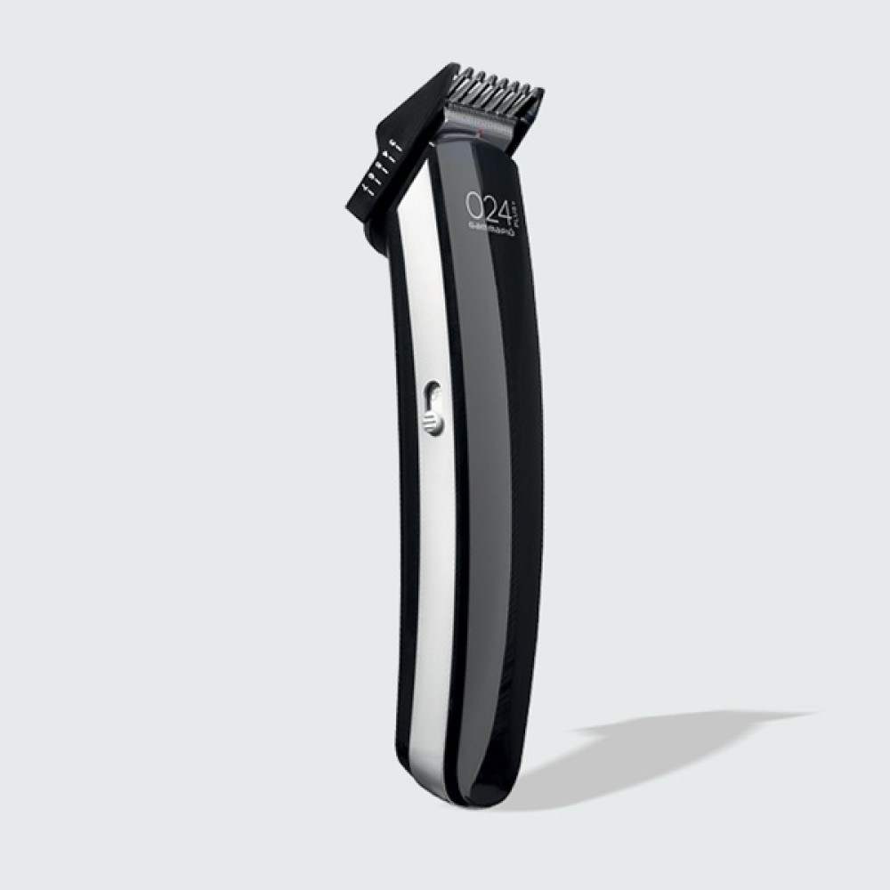 Profesionalni trimer za šišanje GammaPiu ELMOT 024 je kompaktna ergonomična profesionalna mašinica za šišanje, pogodna za stilizovanje brade i zulufa. Ima zamenjivu keramičku glavu. Dolazi u paketu sa stalkom za punjenje. Ostali modeli ELMOT mašinica obuhvataju 021, 025 i 050 aparate za šišanje.