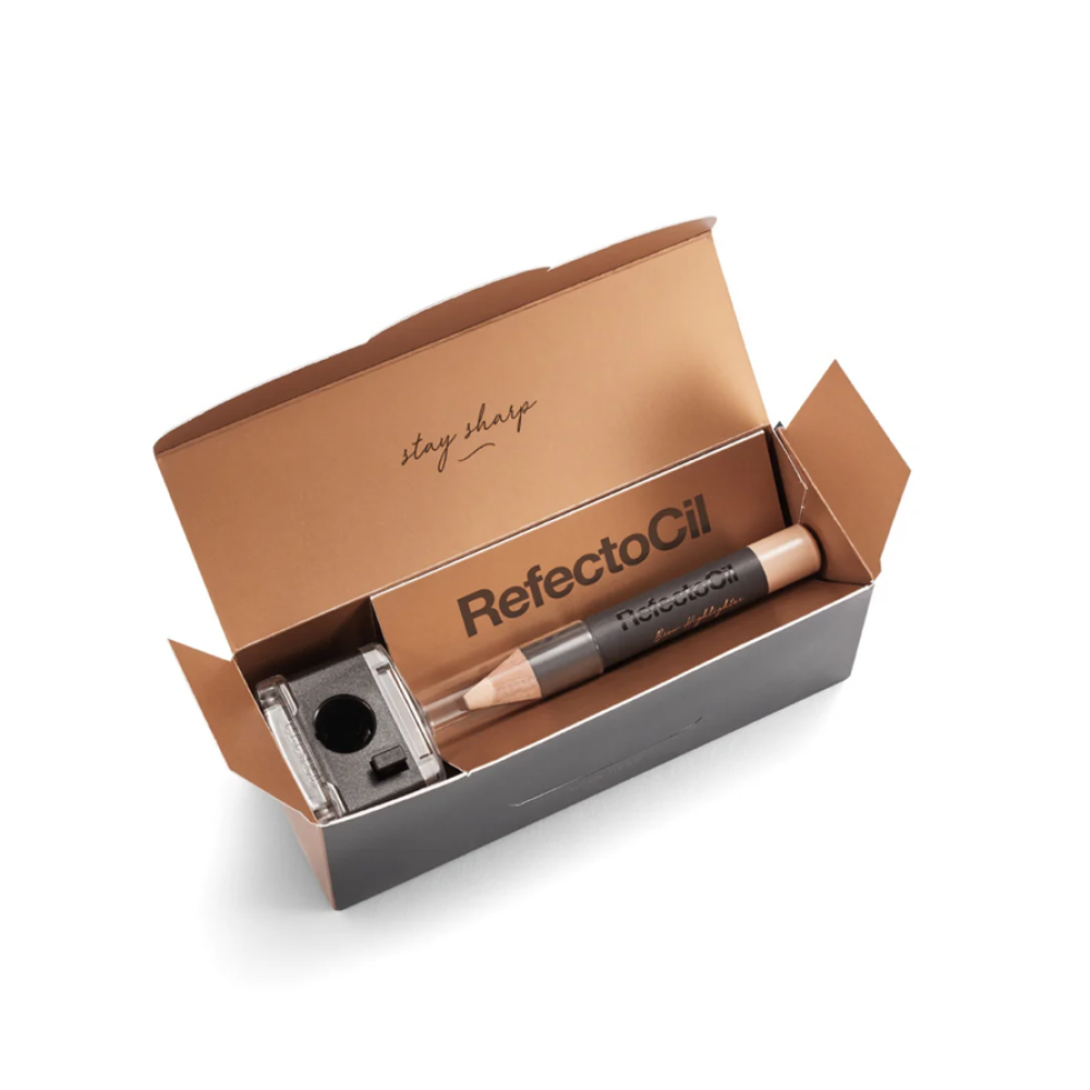 Set za naglašavanje obrva RefectoCil sadrži olovku za naglašavanje obrva i posebno razvijeni oštrač za šminku.