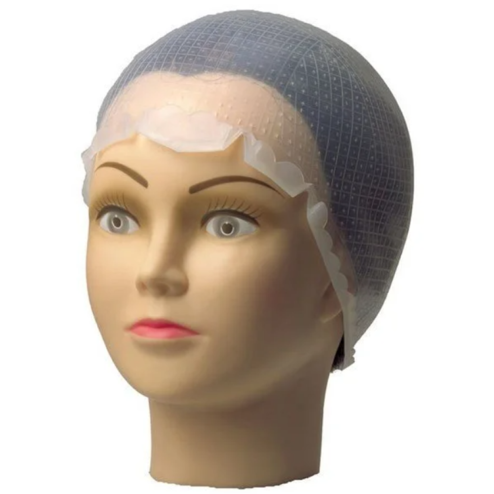 Silikonska kapa za pramenove sa simetrično izbušenjim rupicama za izvlačenje pramenova.