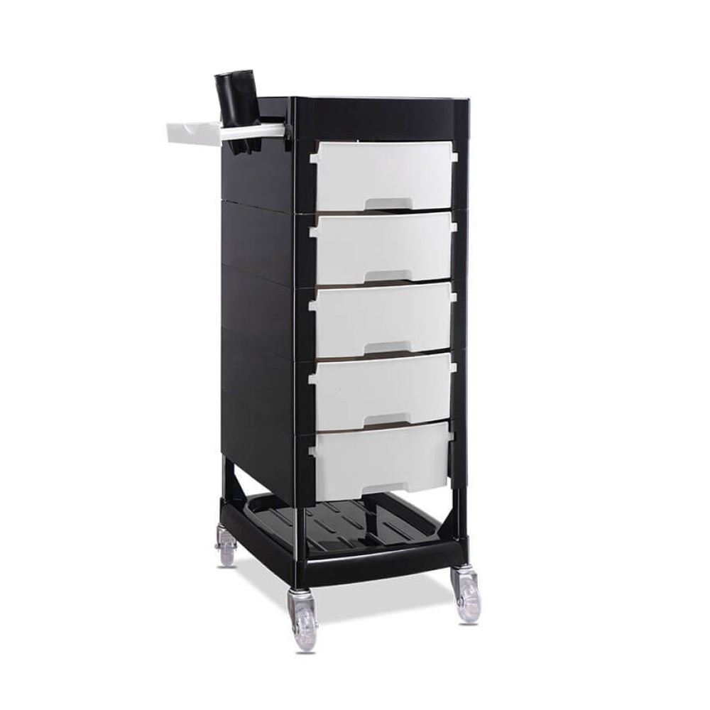Frizerska kolica sa 5 zatvorenih fioka, gornjom površinom sa pregradama i držačem za fen.