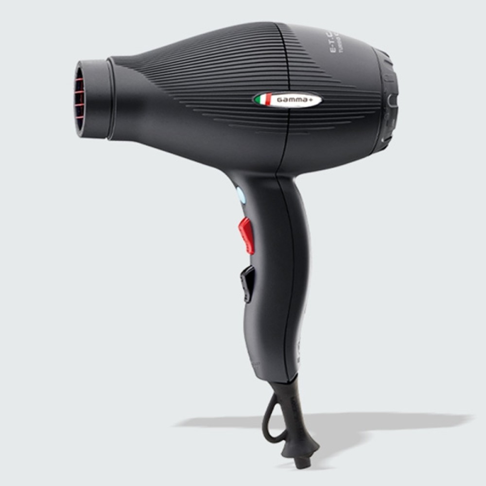 Crni fen za kosu GammaPiu "ETC Light" predstavlja kombinaciju male težine i maksimalne snage. Zahvaljujući turbo kompresor tehnologiji povećavaju se pritisak i brzina vazduha pri izlasku iz fena. Težina od samo 430 g i ergonomska drška, smanjuju opterećenje po zglob prilikom stilizovanja. Ima dva nivoa temperature, dve brzine i opciju za izduvavanje hladnog vazduha.