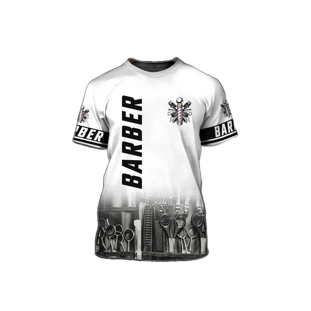 Majica kratkih rukava sa okruglim izrezom i grafičkim uzorkom "BARBER". Materijal: poliester.