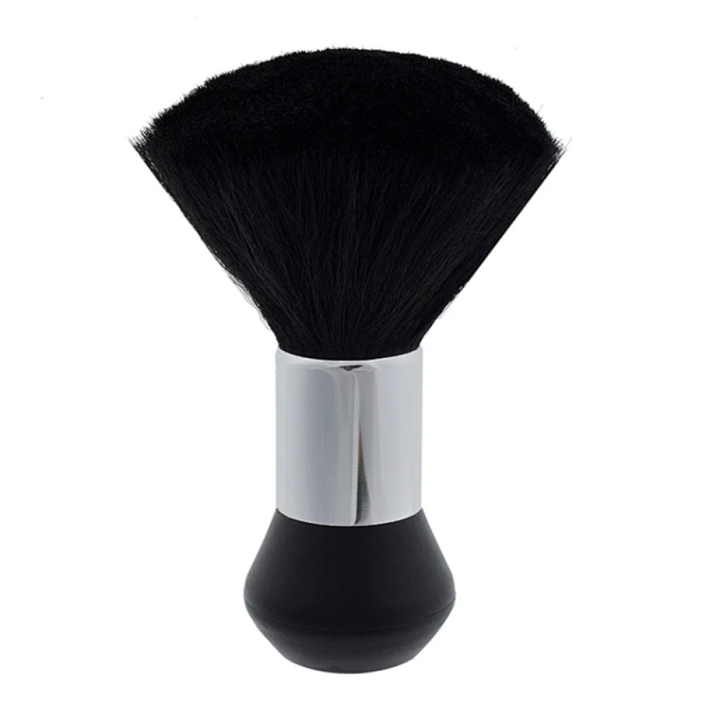 Kvalitetna fina četka za uklanjanje dlaka nakon šišanja. Pogodna i za šminkanje. Materijal drvo i najlonske čekinje. Boja srebrno crna.