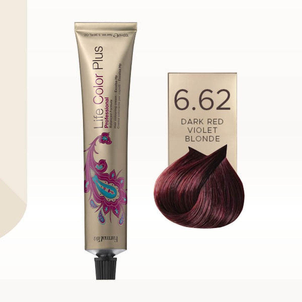Tamna crveno violet plava (6.62) boja za kosu spada u porodicu crvenih i ima uravnoteženu formulu koja omogućava interakciju između hidrirajućih oligopeptida i visokokvalitetnih pigmenata. Njihovo uzajamno dejstvo omogućava dubinsko prodiranje specijalnih molekula u korteks dlake, pružajući kosi dugotrajnu hidriranost i lakše stilizovanje.