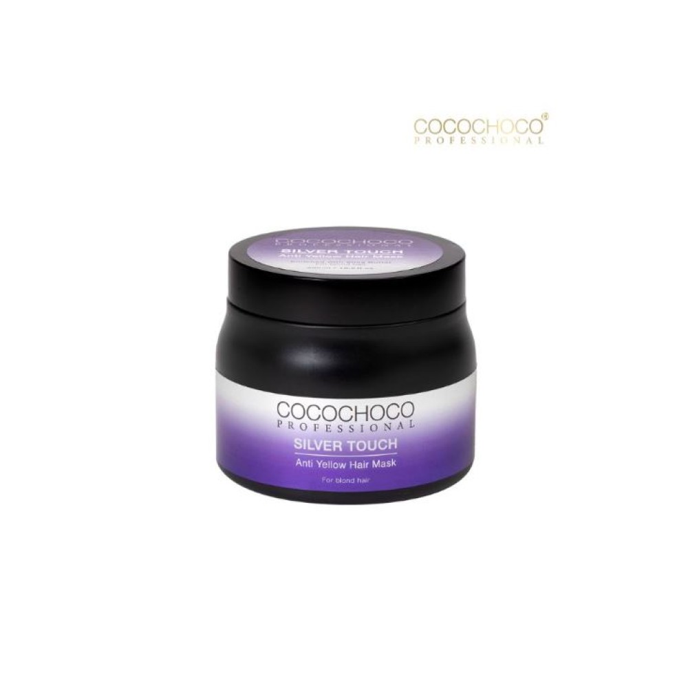 COCOCHOCO Anti Yellow Silver Touch maska, obogaćena Shea buterom, uklanja neželjene žute i narandžaste tonove s platinaste, srebrne, sede, bele, prirodno plave i izbeljene kose. Posebno odabrani sastojci neutraliziraju žutilo, daju prekrasnu boju, pomažu u obnovi oštećene kose, hidriraju i poboljšavaju sveukupno stanje kose.