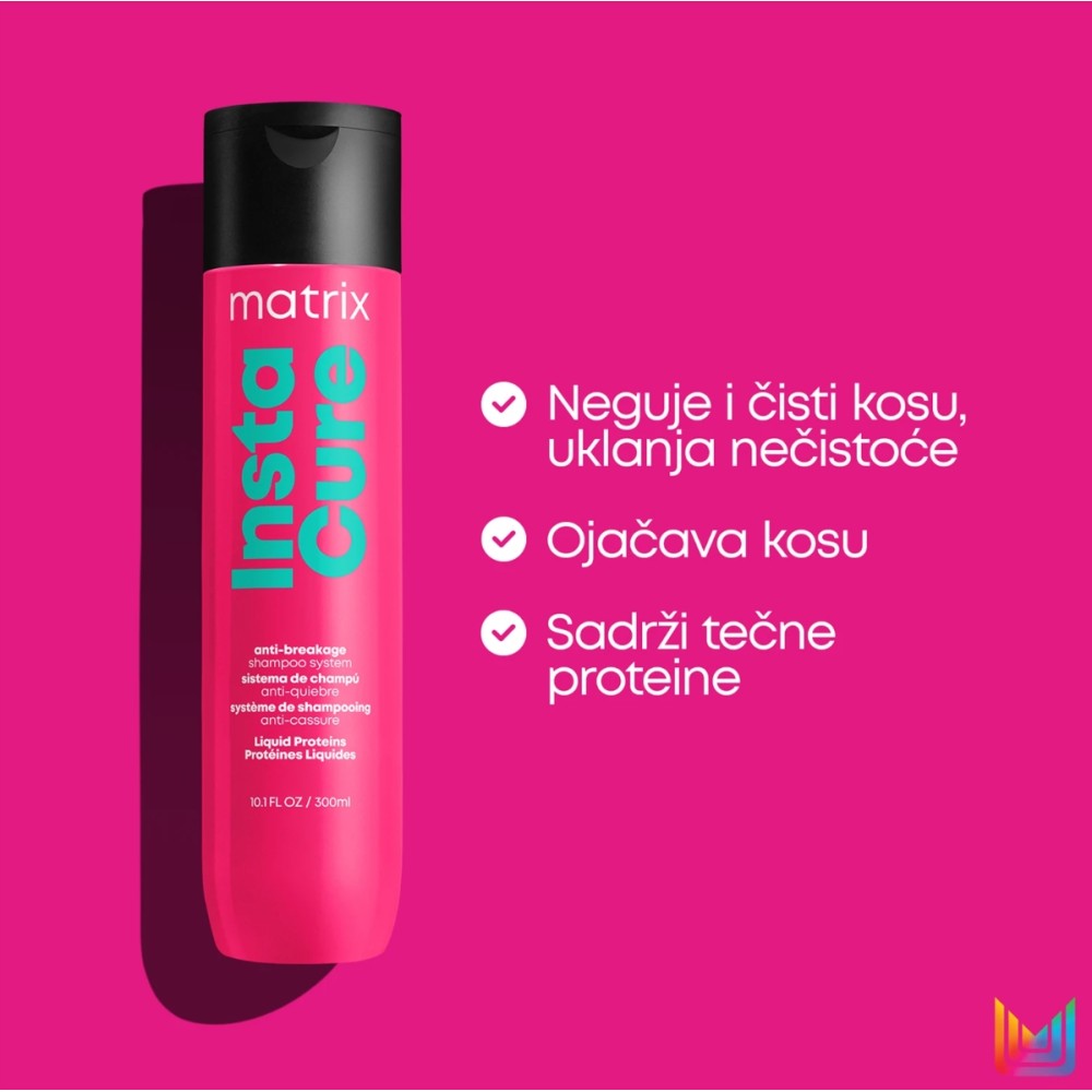 Matrix Total Results InstaCure šampon protiv lomljenja kose sa tečnim proteinima pomaže u ojačavanju kose kako bi se smanjilo lomljenje suve i oštećene kose.