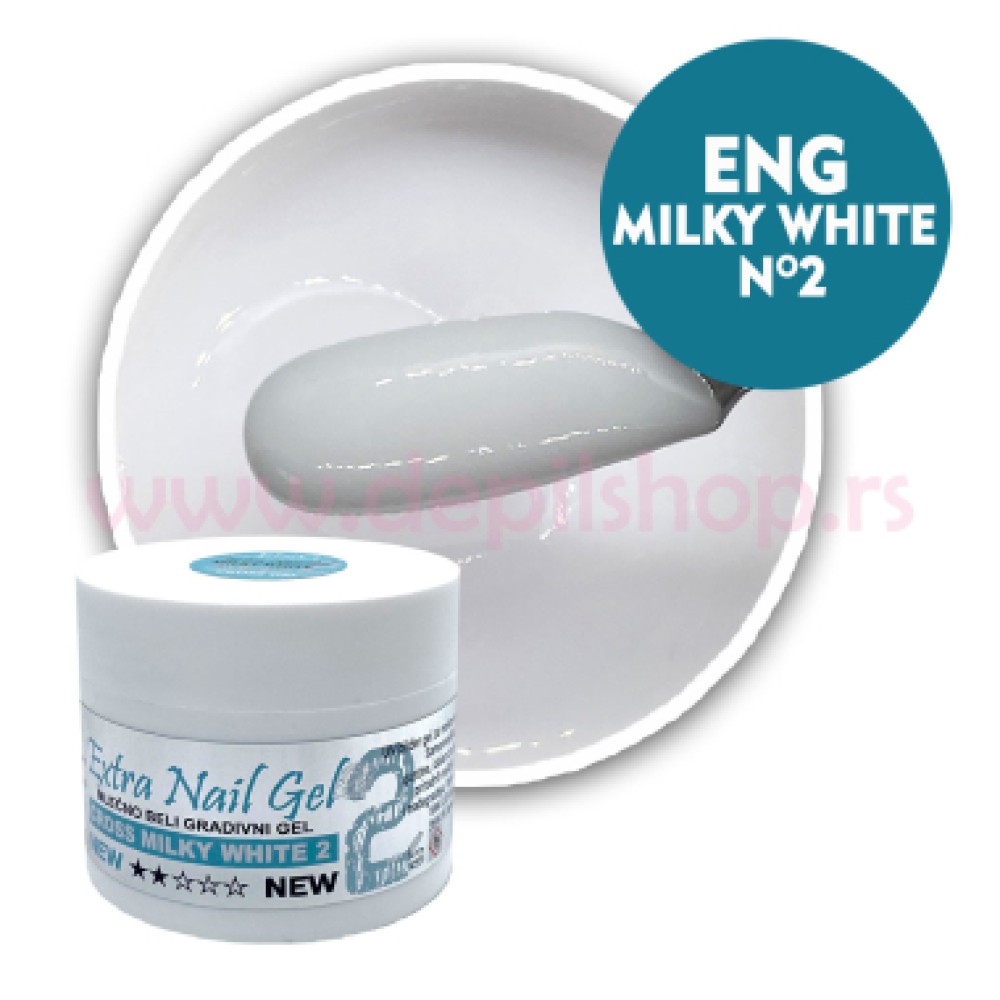 ENG CROSS MILKY WHITE No2 GEL. Savršen mlečno beli gel. Monofazni UV bilder gel za nokte. Koristi se za nadogradnju, izlivanje i ojačavanje noktiju. Sušiti 2 min u UV lampi ili 60 sec u LED lampi.