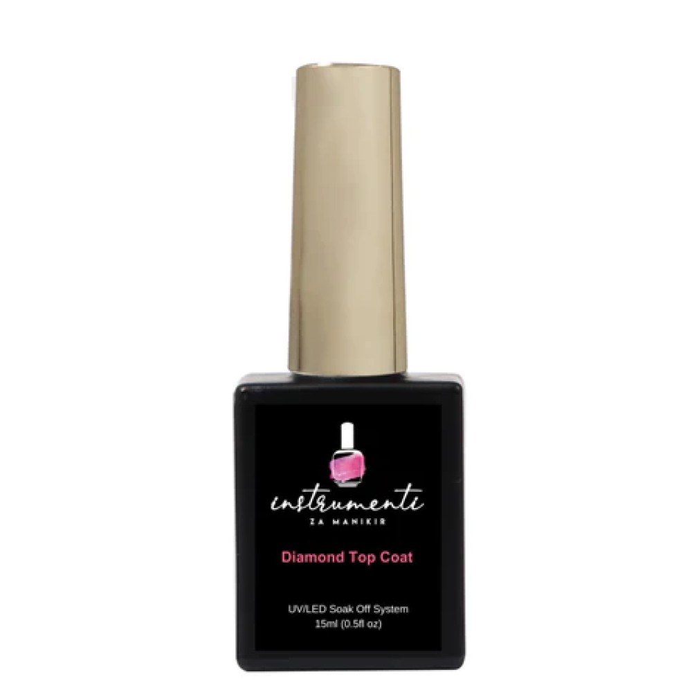I.Z.M Diamond završni sjaj bez lepljivog sloja. Ima jak, staklasti sjaj i veoma je otporan na habanje i ogrebotine. Proizvod je pogodan za gel lak, gel ili akril.