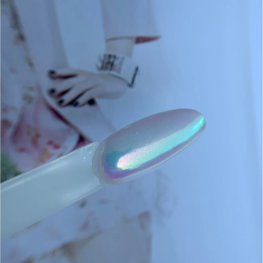 Fino raspršeni hrom prah sa reflektujućim česticama nanosi se na podlogu gela ili gel laka, stvarajući na noktu površinu ogledala koja odlično izgleda na noktima bilo koje dužine.