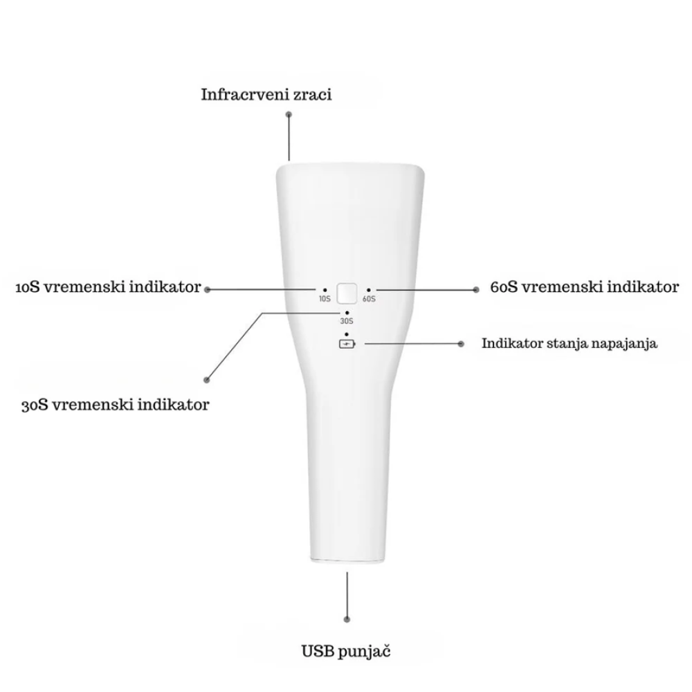 Lako prenosiva UV/LED lampa jačine 9W sa ugrađenom baterijom, sa ukupno 8 LED dioda.