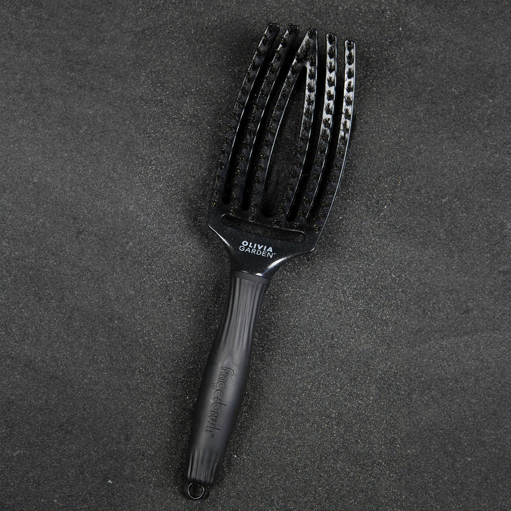 Olivia Garden Fingerbrush Mix četka namenjena je svakodnevnoj upotrebi, za raščešljavanje i stilizovanje svih tipova kose. Savršena je za očuvanje zdravlja kose zahvaljujući kombinaciji prirodnih i veštačkih iglica koje ravnomerno raspoređuju prirodna ulja duž dlake, ističući njen prirodni sjaj, dok istovremeno masažom stimulišu teme. Pogodna je za raščešljavanje mokre i/ili suve kose. Konkavan oblik i fleksibilna glava četke omogućavaju bolje prijanjanje uz glavu i teme, što doprinosi većoj kontroli i boljoj masaži. Poseban dizajn otvora na četki omogućava brže sušenje, čime se smanjuje isušivanje kose i temena. Laka je i poseduje iglu za razdvajanje kose.