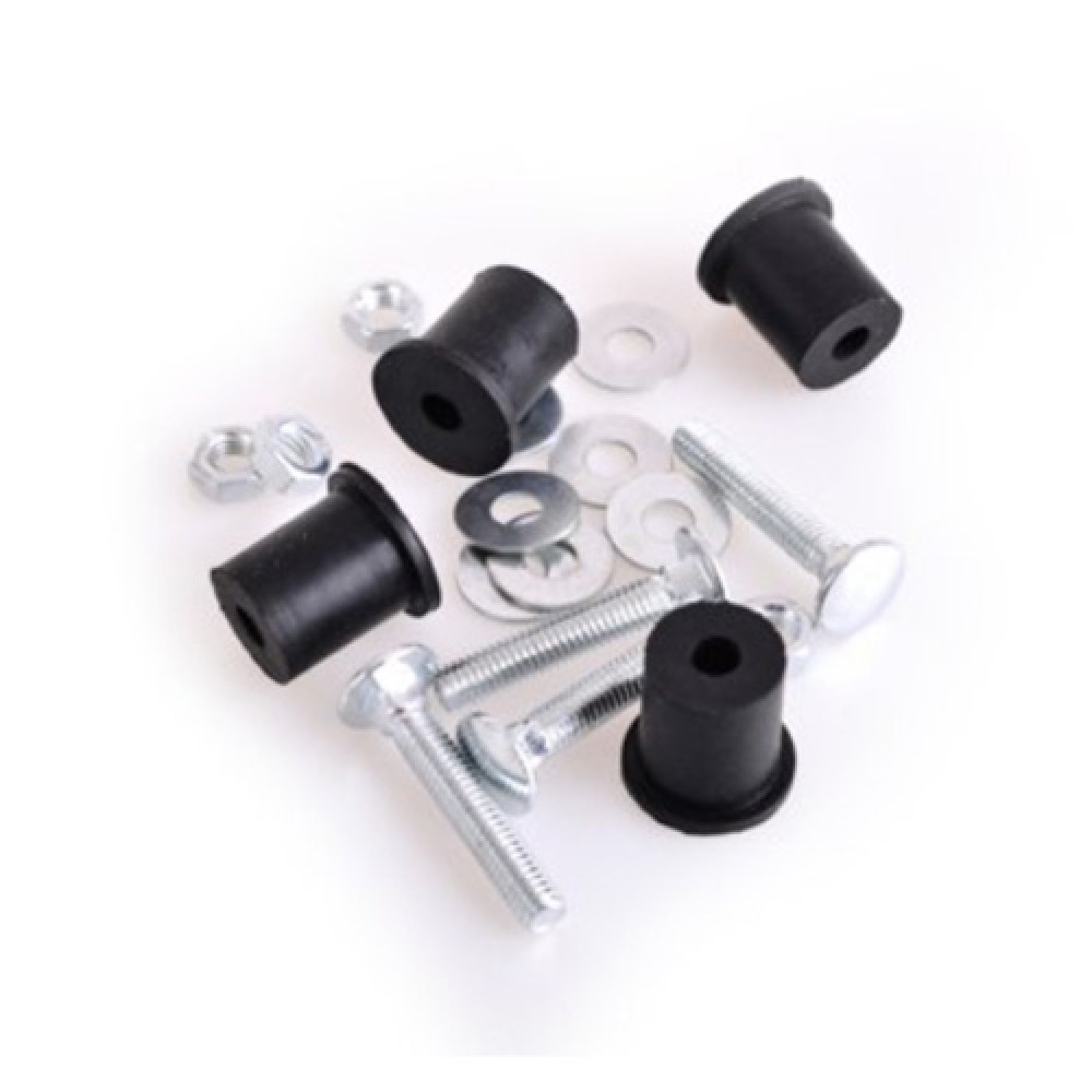 Set sadrži: 4 šrafa, 4 matice, 8 podloški i 4 gumene tiple.