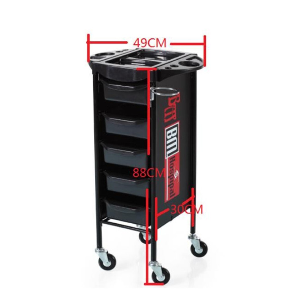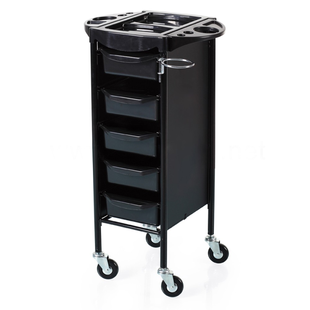 Lako pokretna frizerska kolica sa 5 fioka i praktičnim držačima za frizerski pribor.