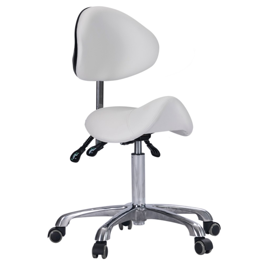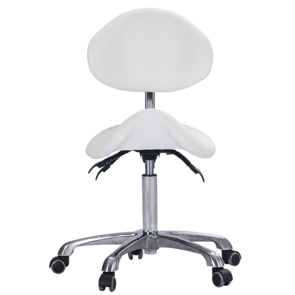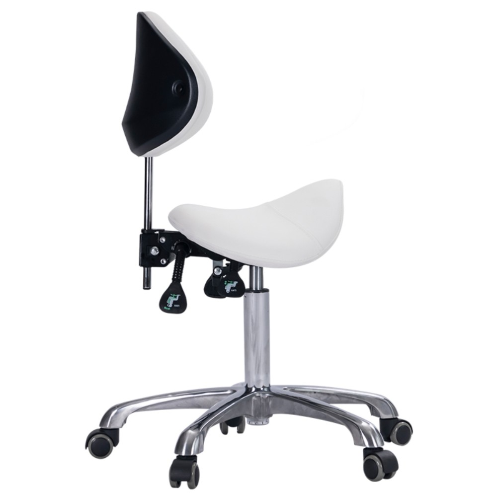 Udobna i stabilna kozmetička stolica sa naslonom za leđa i profiliranim sedištem, na vrlo stabilnoj bazi sa pet kotačića. Sa mogućnošću podešavanja sedenja, naslona i visine stolice.