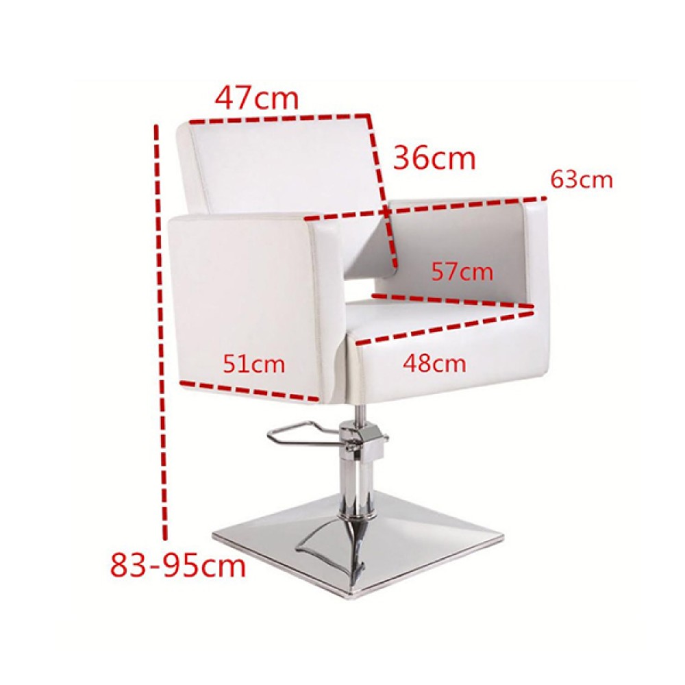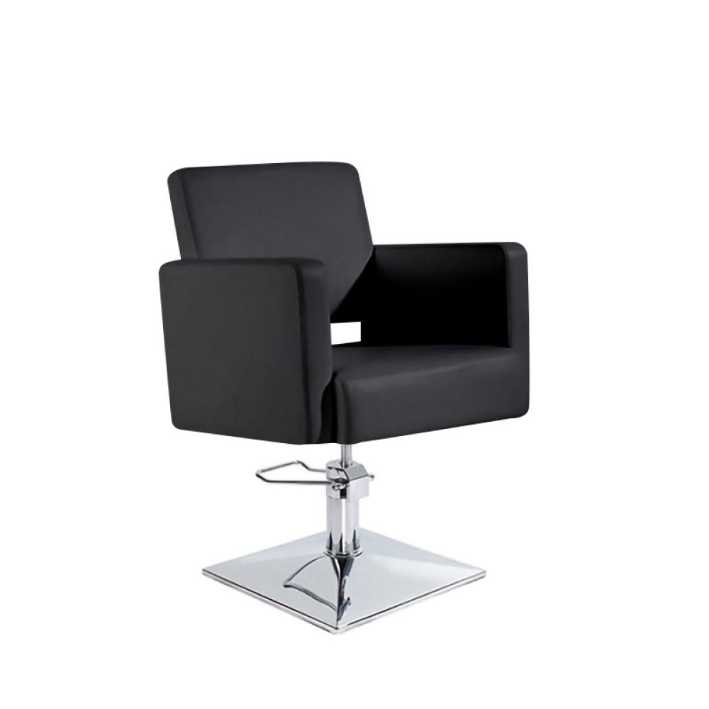 Elegantna, udobna frizerska stolica klasičnog kvadratnog, bezvremenskog dizajna, uklopiva u sve moderne interijere salona.