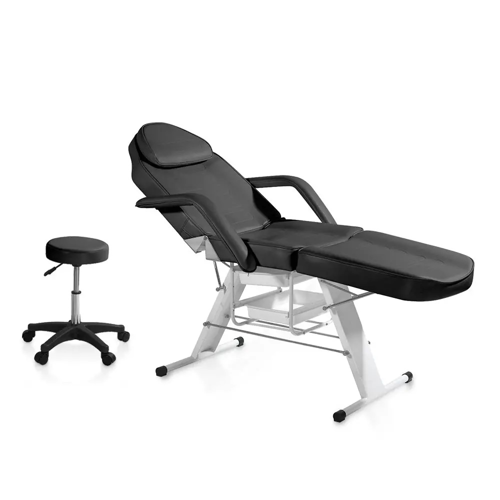 Kozmetički ležaj sa podesivim naslonom za leđa i noge, kao i pomoćnom stolicom za što bolje prilagođavanje tokom tretmana, pružajući veću udobnost kozmetičaru i klijentu. Sadrži dve fioke što omogućava optimizaciju prostora i skladištenje materijala, dermokozmetike, peškira i drugih proizvoda pri izvođenju tretmana. Jastuk i nastavci za ruke su skidajući u slučaju potrebe za položajem na stomaku klijenta.