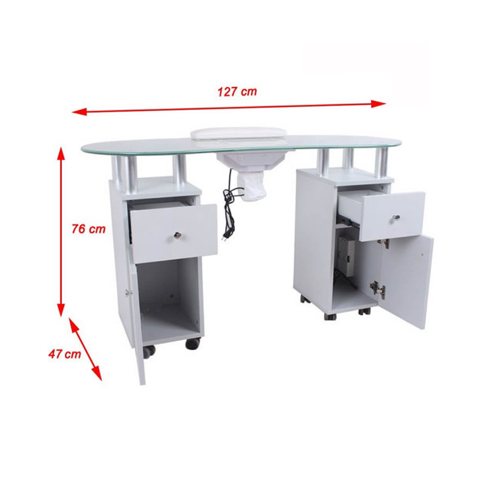 Dimenzije: 12 x 77 x 51 cm. U sto je ugrađen usisivač za manikir.