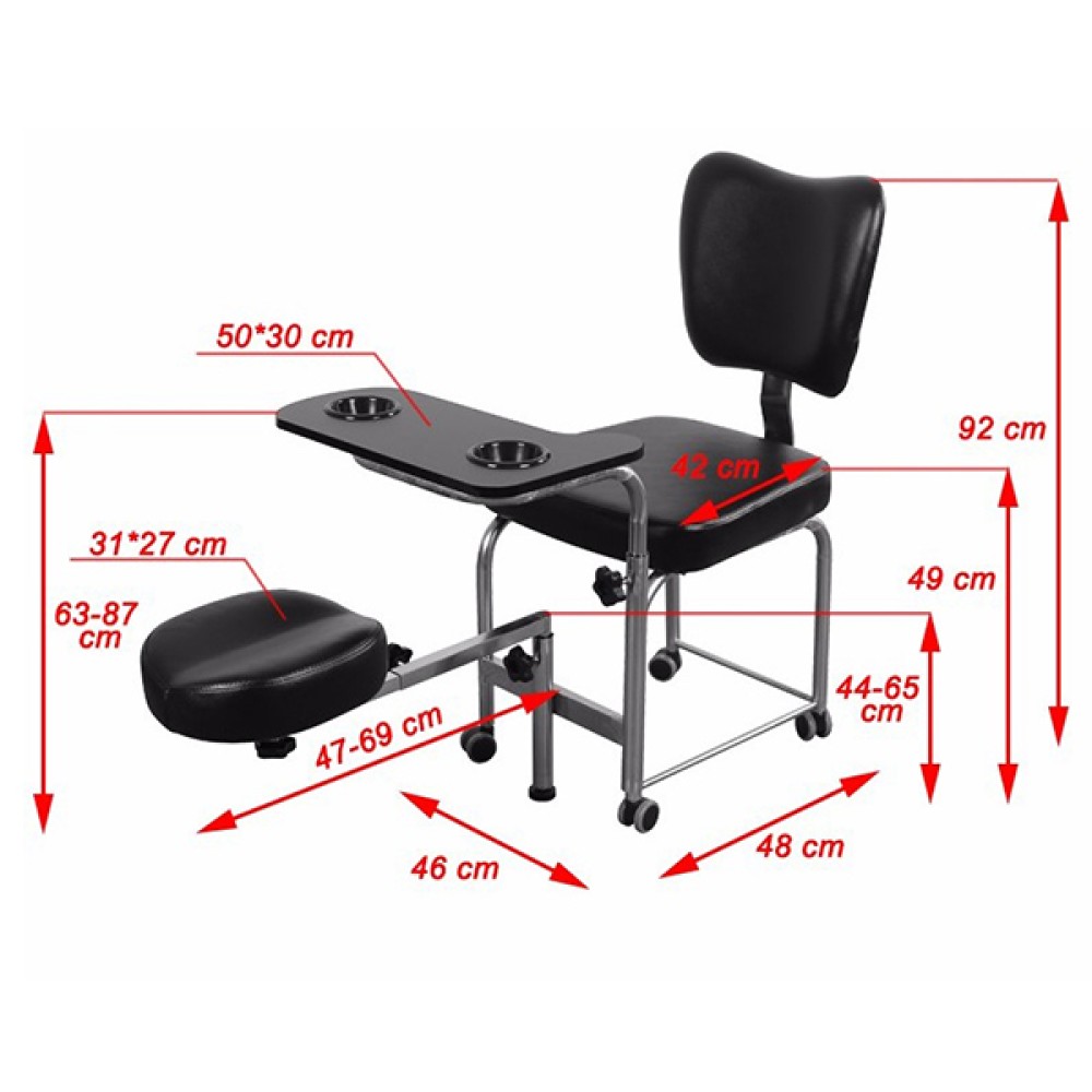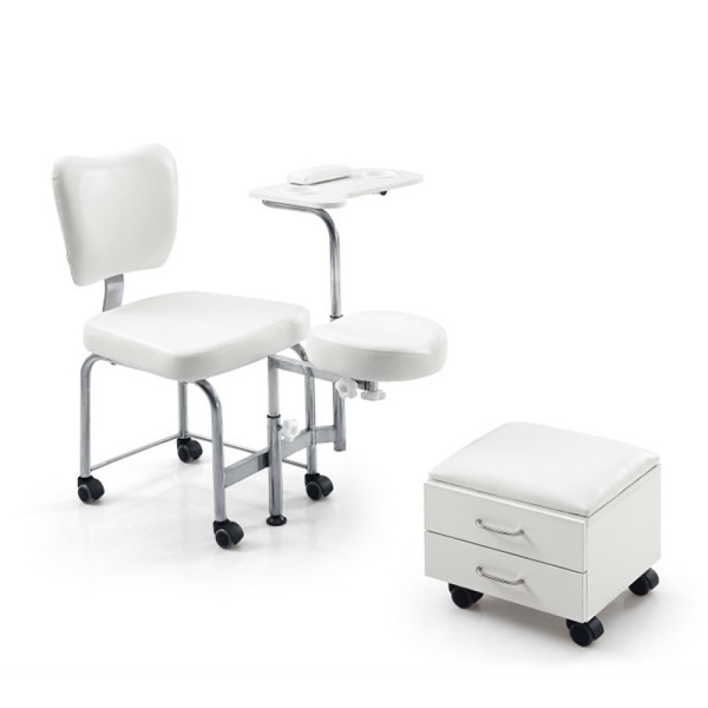 Izuzetna i sofisticirana stolica za pedikir dolazi opremljena ormarom za odlaganje osnovnih preparata za izvođenje tretmana pedikure i podesivim osloncem za noge.
