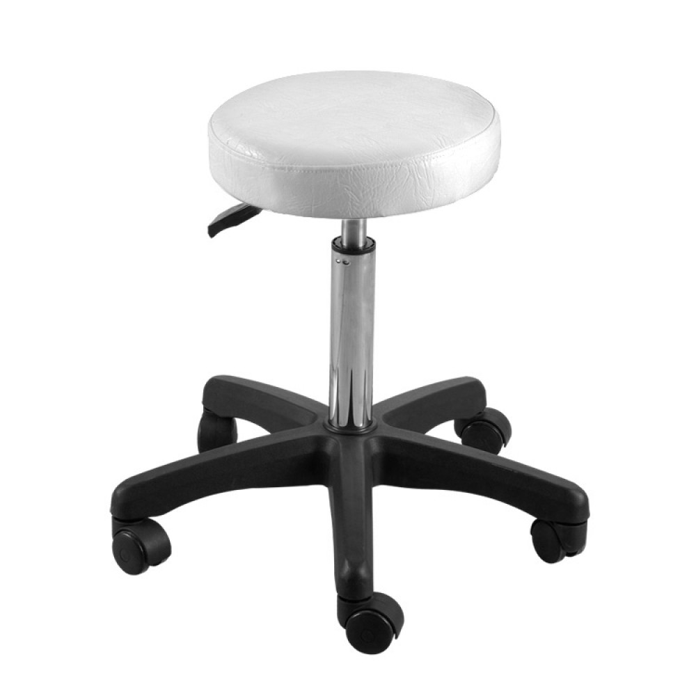 Kvalitetna pomoćna stolica podstavljena gelom debljine 5 cm, sa postoljem od hromiranog čelika i 5 točkova.