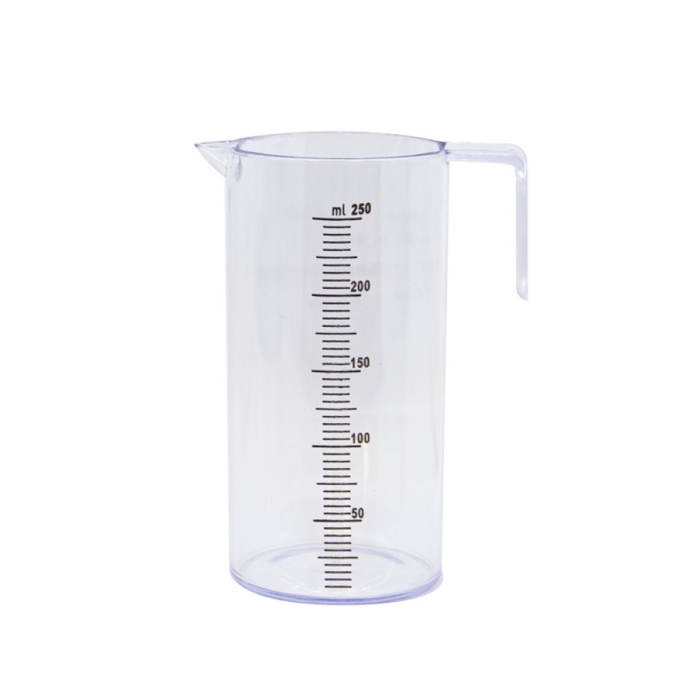 Precizno podešena merica sa drškom i kljunom za precizno doziranje boje i hidrogena. Podešena na 250 ml. Materijal Pvc. Boja prozirna.