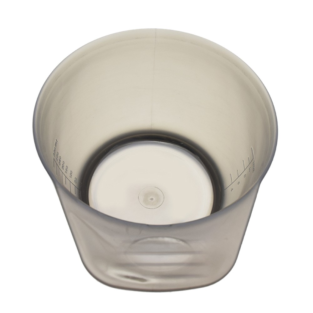 Posuda za mešanje boje sa drškom, protivkliznom gumom i unutrašnjom skalom. Zapremina 350 ml. Boja siva.