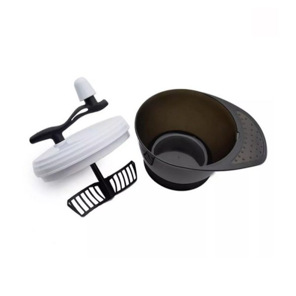 Praktična posuda sa mešačem koji omogućava brzo mešanje boje za kosu u ujednačenu teksturu. Savršen pomoćnik za svaki frizerski salon.