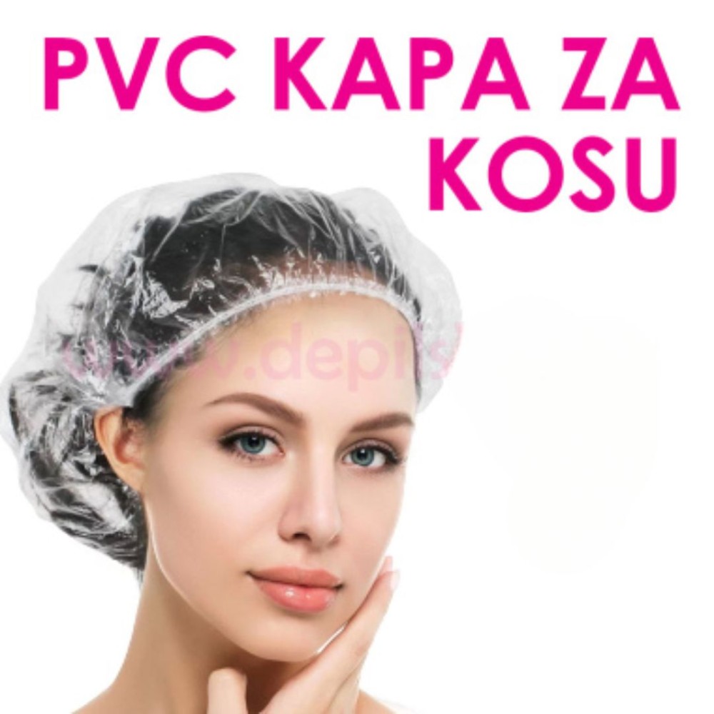 Kape za kosu za jednu upotrebu od sa lastišem PVC (plastične). PVC se koriste za tuširanje i u frizerskim salonima. Na slici je TNT kapa a PVC isto izgleda samo je providna i plastična (kao kesa). Pakovanje po 1 kom u kesici/ 25 kom.